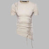 Aszimmetrikus Bézs Fűzős Póló Punk Stílusban