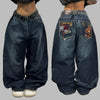 Baggy nadrág fém szegecses övvel és hímzéssel