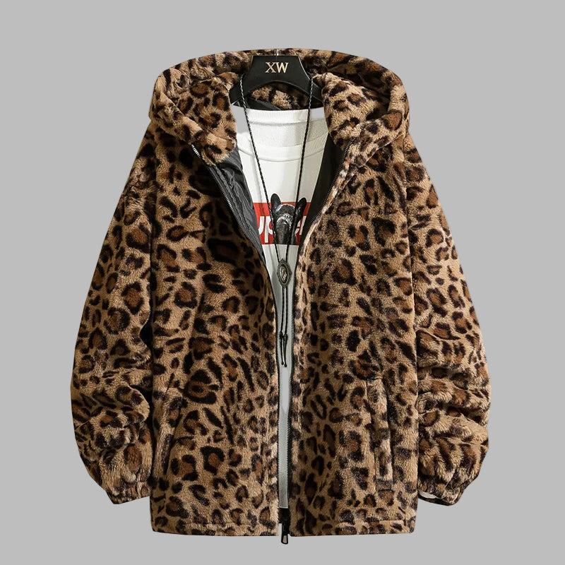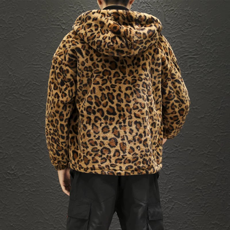 Barna Leopard Rock kapucnis plüss meleg pulóver