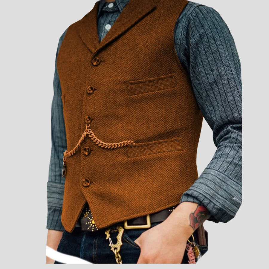Barna Vintage Láncos Rock Mellény Halszálka Befejezés
