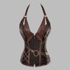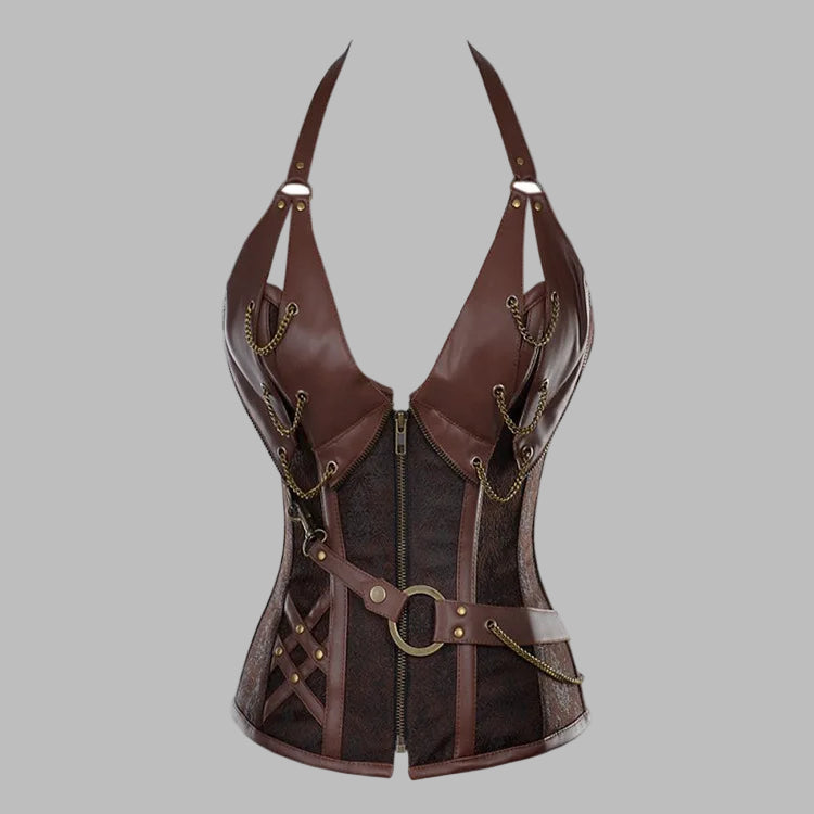 Barna steampunk fűző láncokkal és bőrszíjakkal