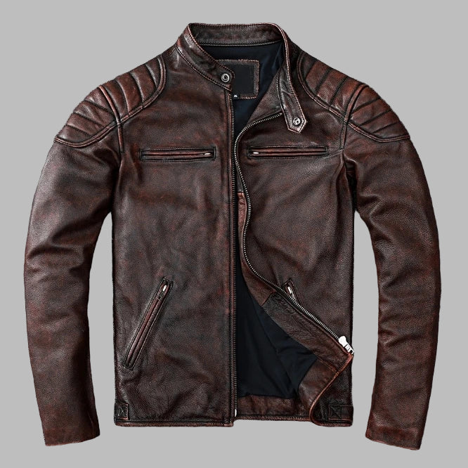Barna Vintage Bőr Rock Dzseki Varrásokkal