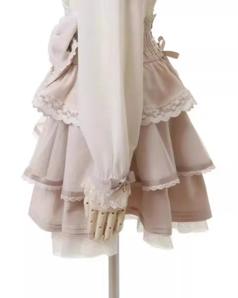 Bézs Jirai Kei szoknya masnival és csipkés szegéllyel