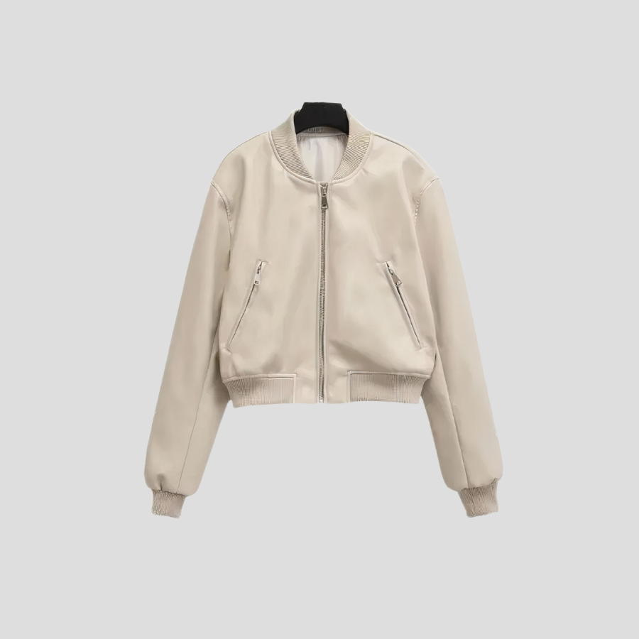 Bézs punk rock bomber dzseki cipzárakkal és húzott mandzsettákkal