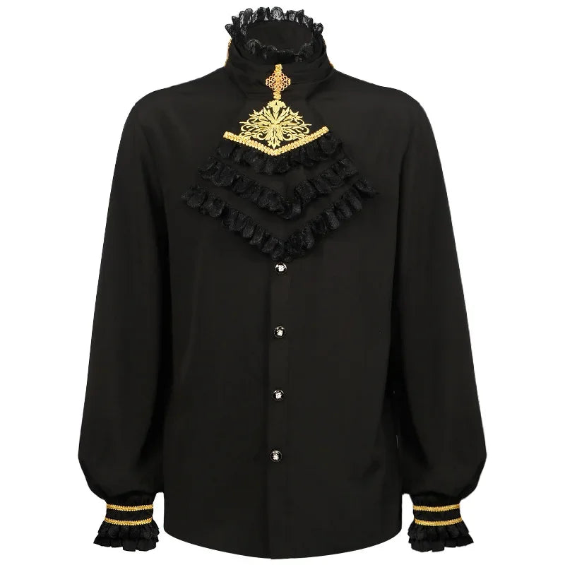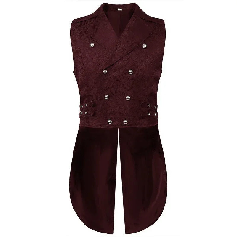 Bordó-fekete steampunk férfi szett csipkével és arany részletekkel