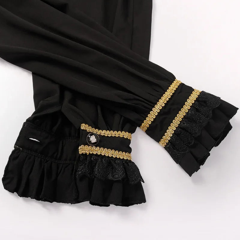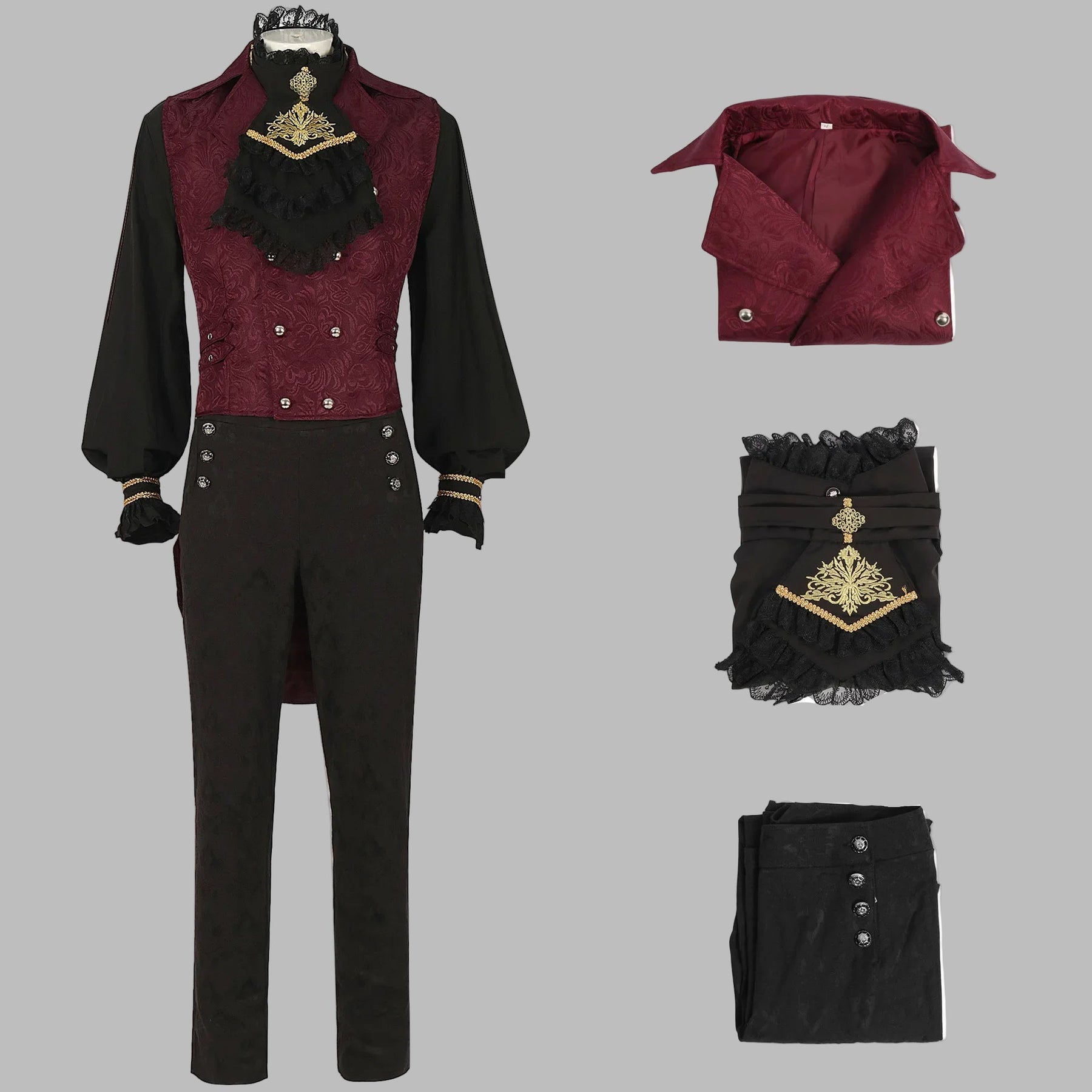 Bordó-fekete steampunk férfi szett arany részletekkel és csipkével