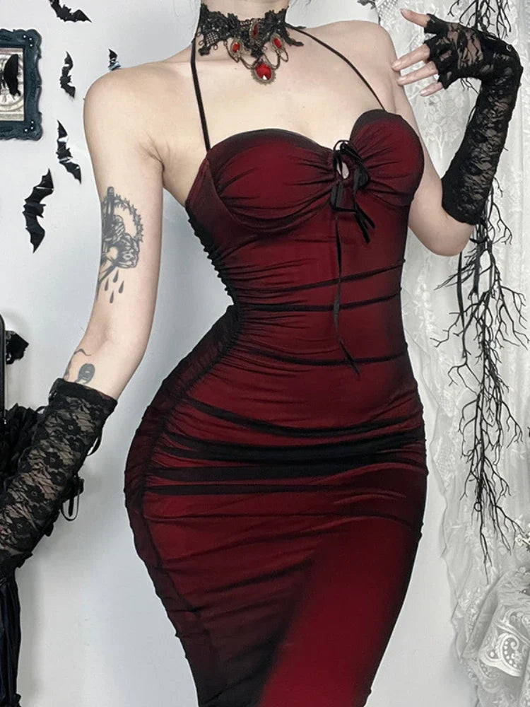 Bordó Hosszú Gótikus Sellő Ruha Hasítékkal és Csipkével Megtekintési beállítások