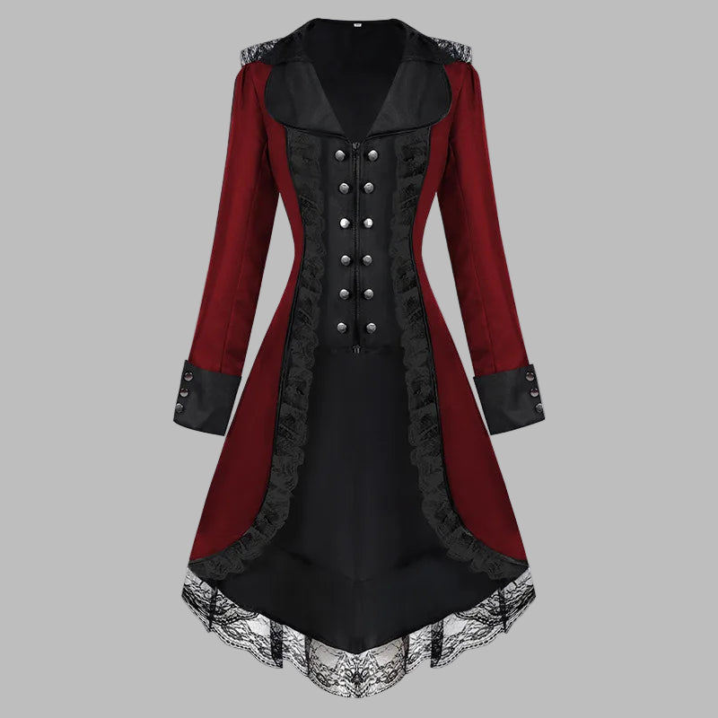 Bordó steampunk ruha fekete fűzővel és csipkével
