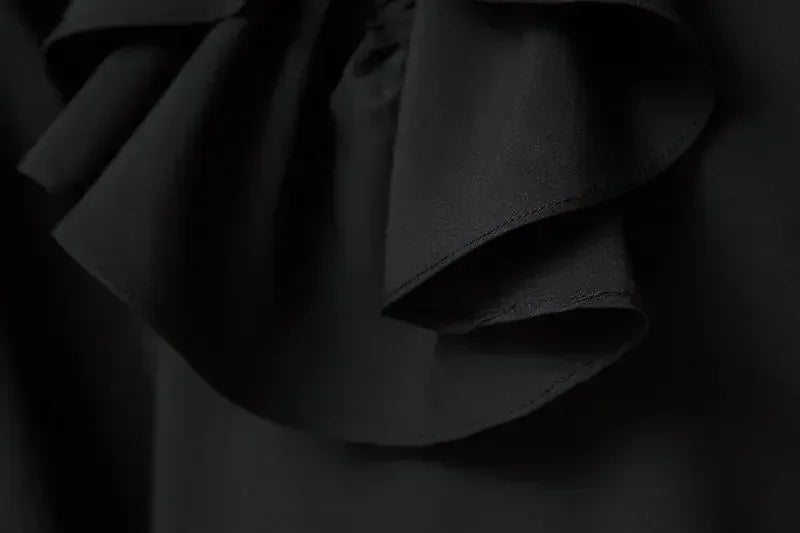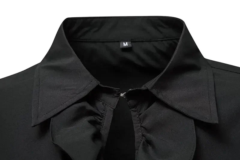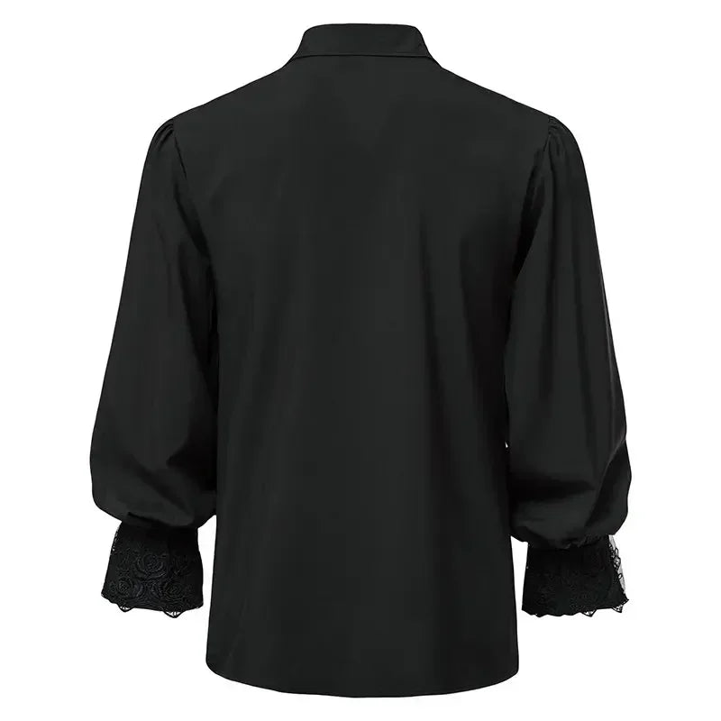 Czarna Koszula Rock z Koronkowymi Mankietami i Żabotem