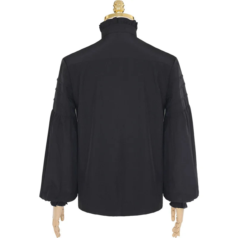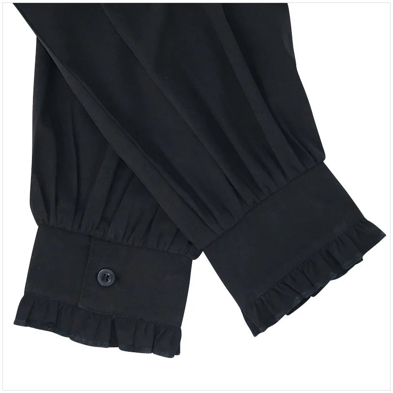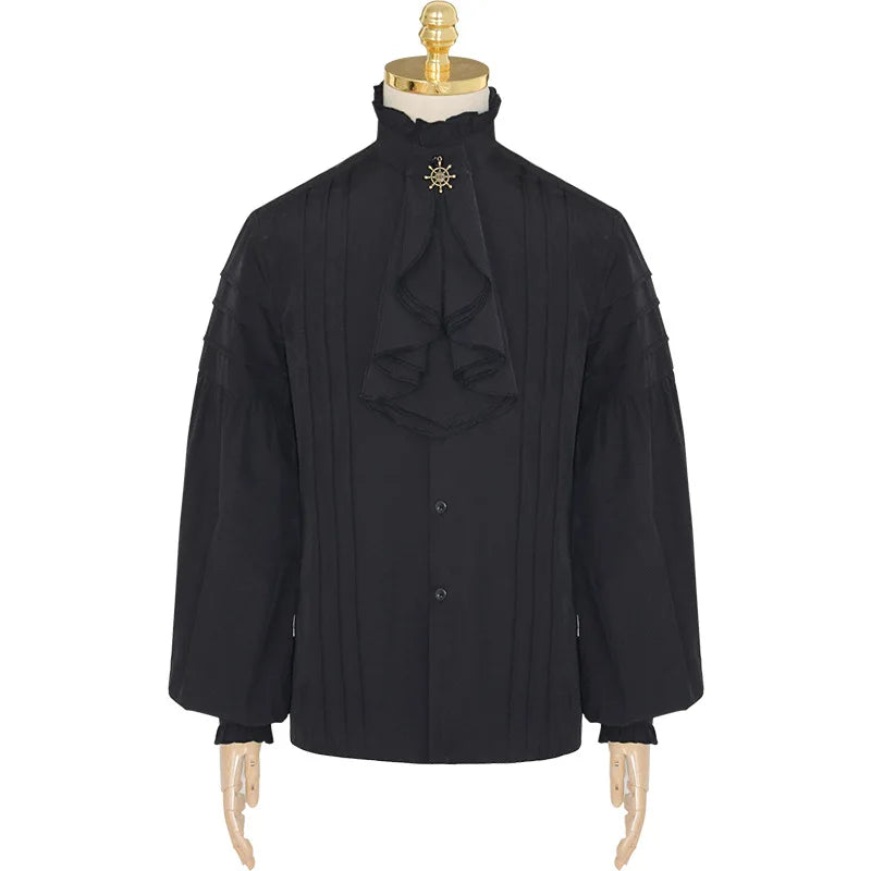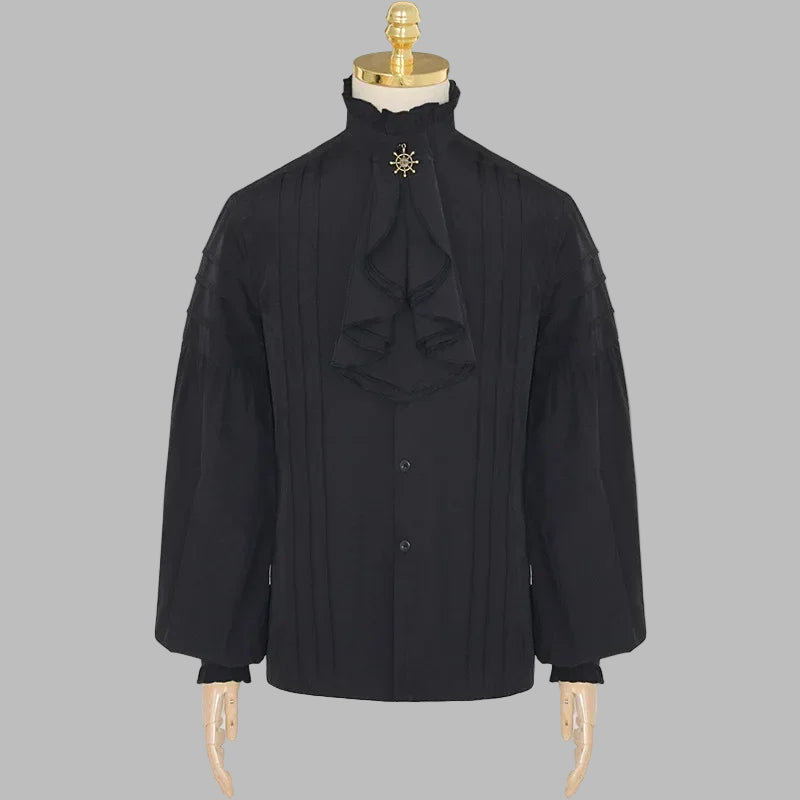 Czarna Koszula Steampunk z Żabotem i Złotą Broszką