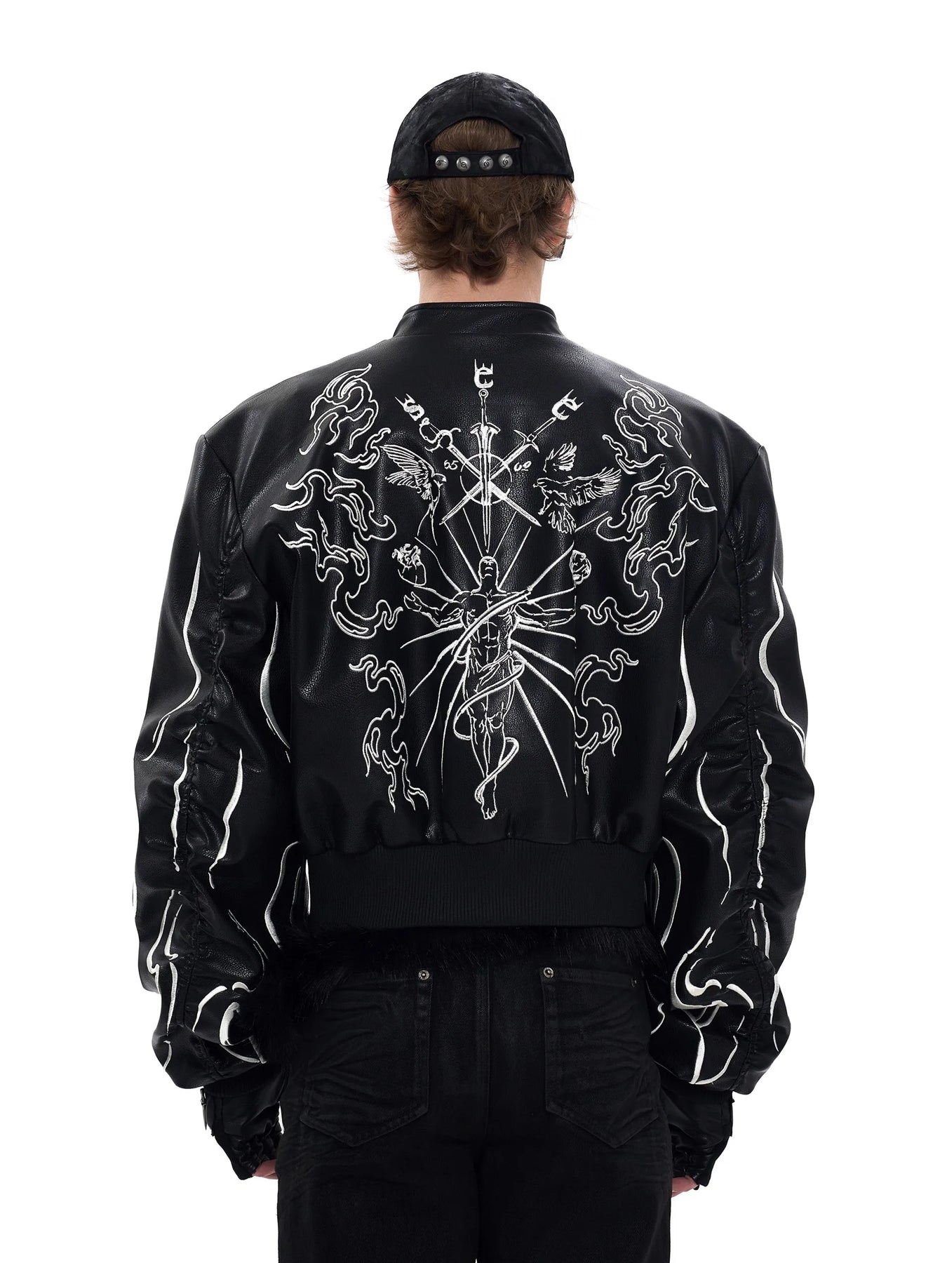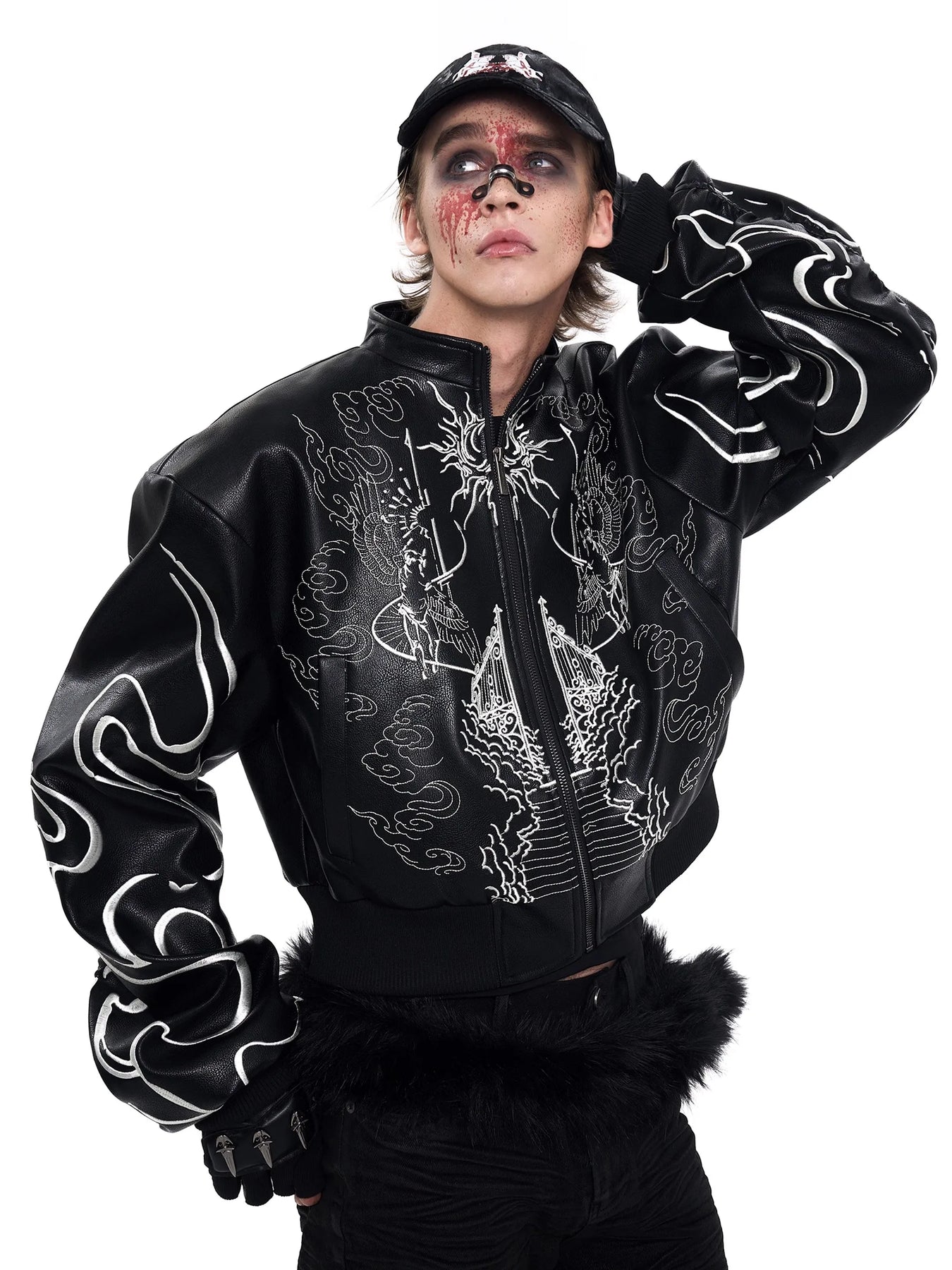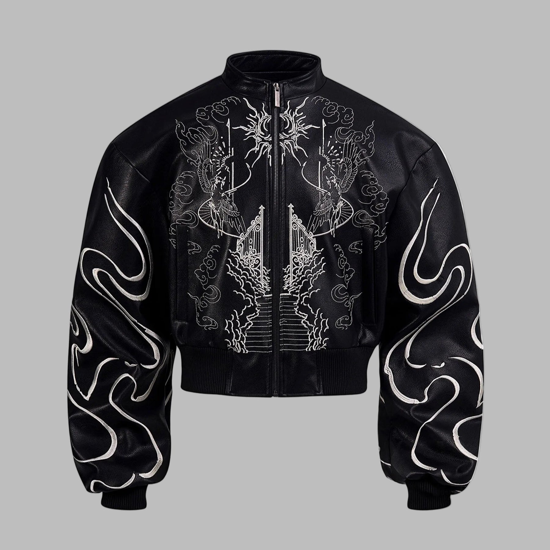 Czarna Kurtka Goth Metal Bomber z Haftem Aniołów i Nieba