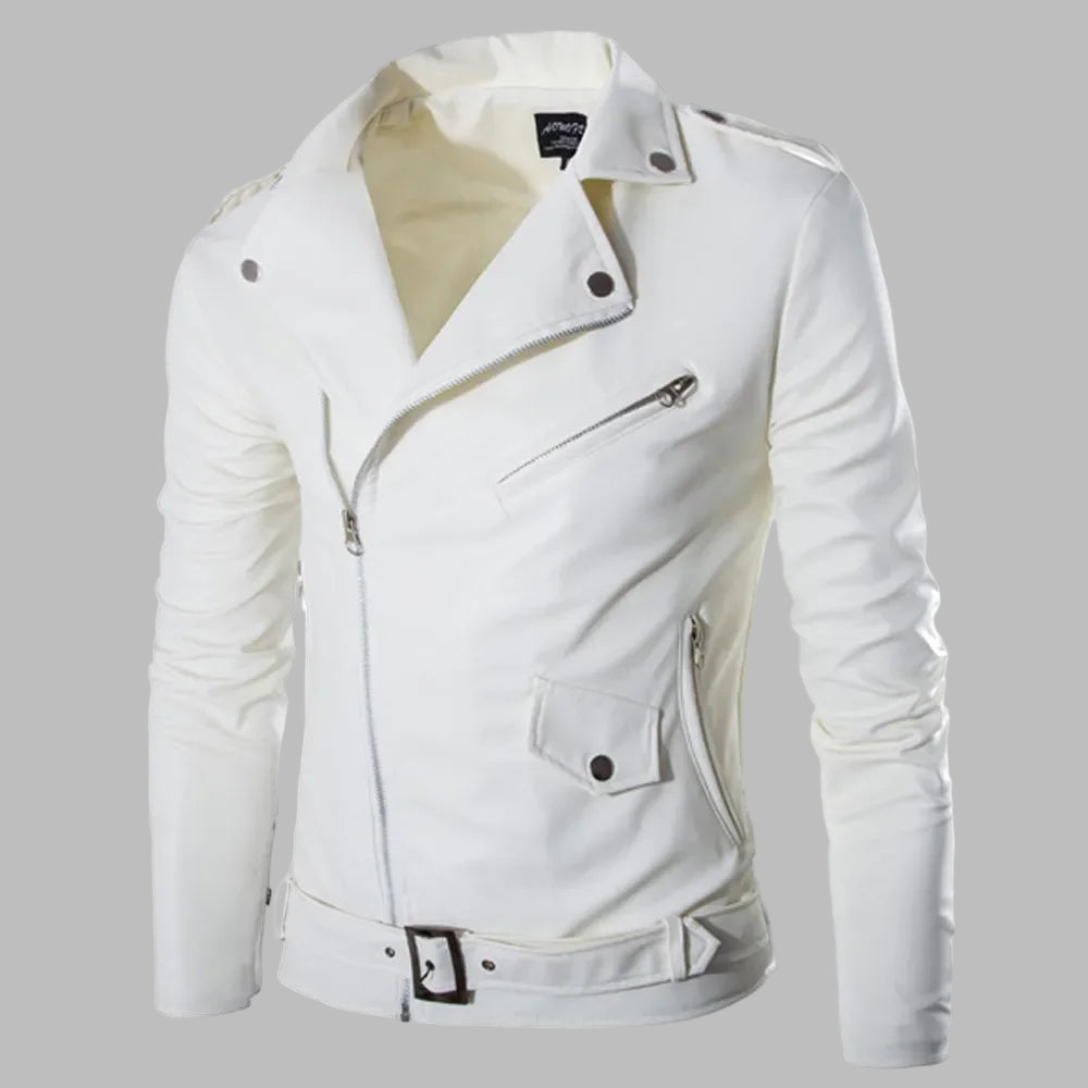 Fehér bőr férfi motoros dzseki övvel Lehetosegek megtekintese