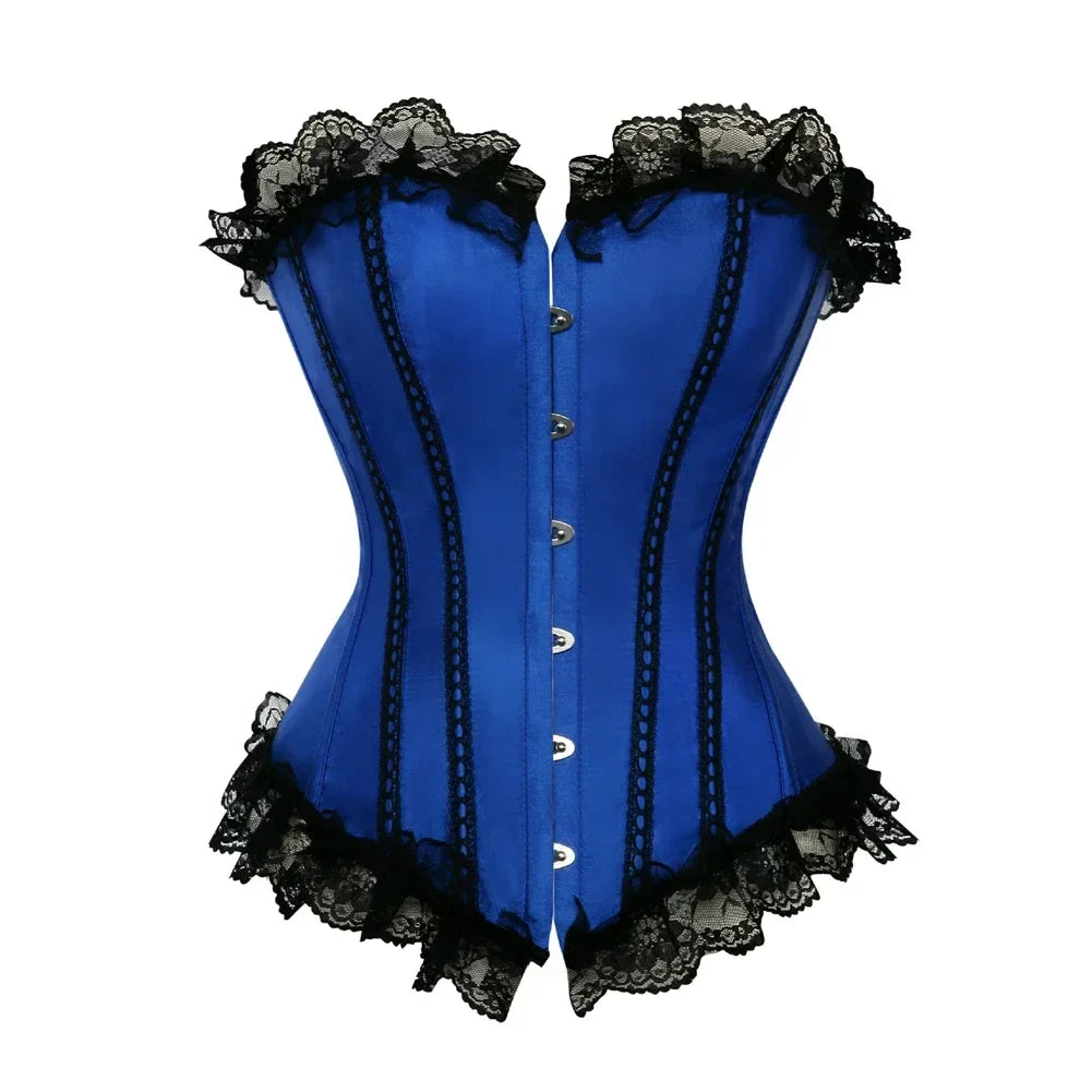 Biały Gorset Burleskowy z Falbankami i Czarną Koronką – Seksowny Styl niebieski