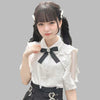 Fehér Lolita Blúz Gyöngy Gallérral és Fekete Masnival Jirai Kei