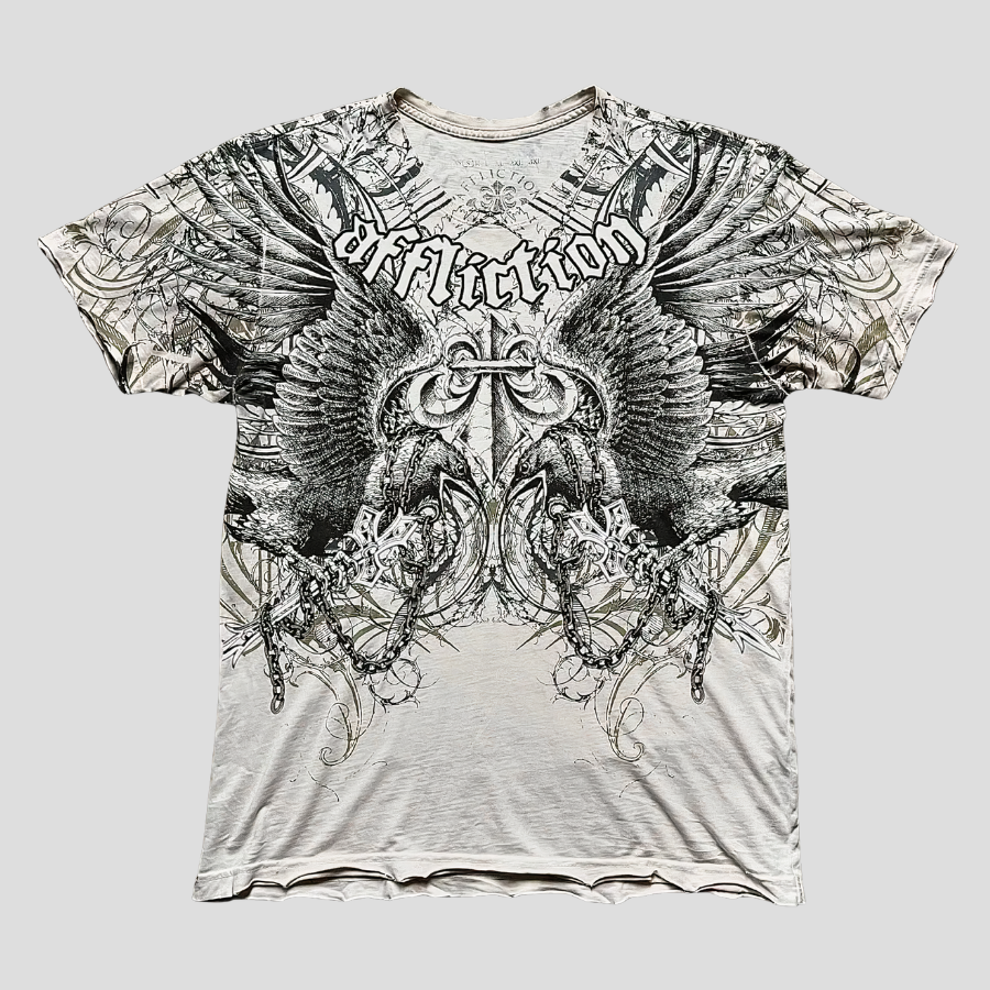 Biała Koszulka z Gotyckimi Skrzydłami i Krzyżem