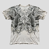 Fehér póló gótikus szárnyakkal és kereszttel