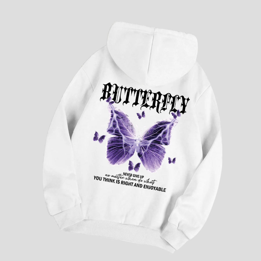 Fehér Punk Pulóver Lila Pillangókkal és Felirattal