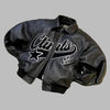 Fekete bőr punk metal kabát fehér mintákkal, oversize