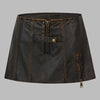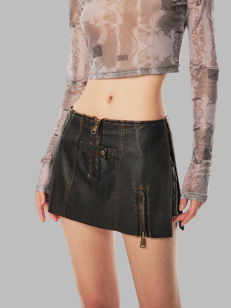 Fekete bőr punk mini szoknya cipzárokkal, XXL