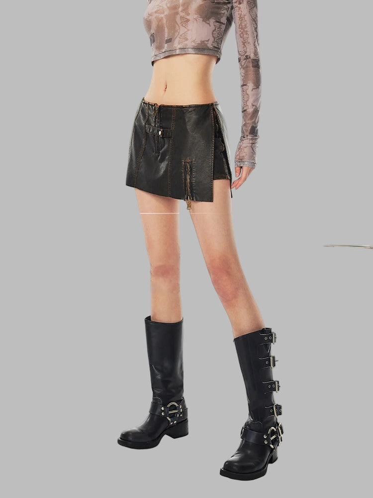 Fekete bőr punk mini szoknya cipzárokkal Lehetosegek megtekintese