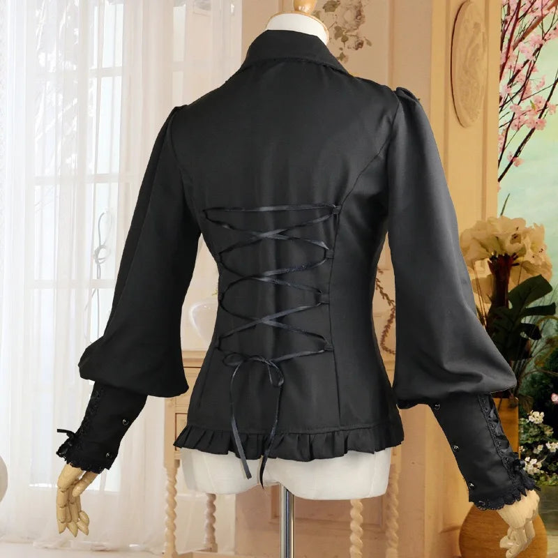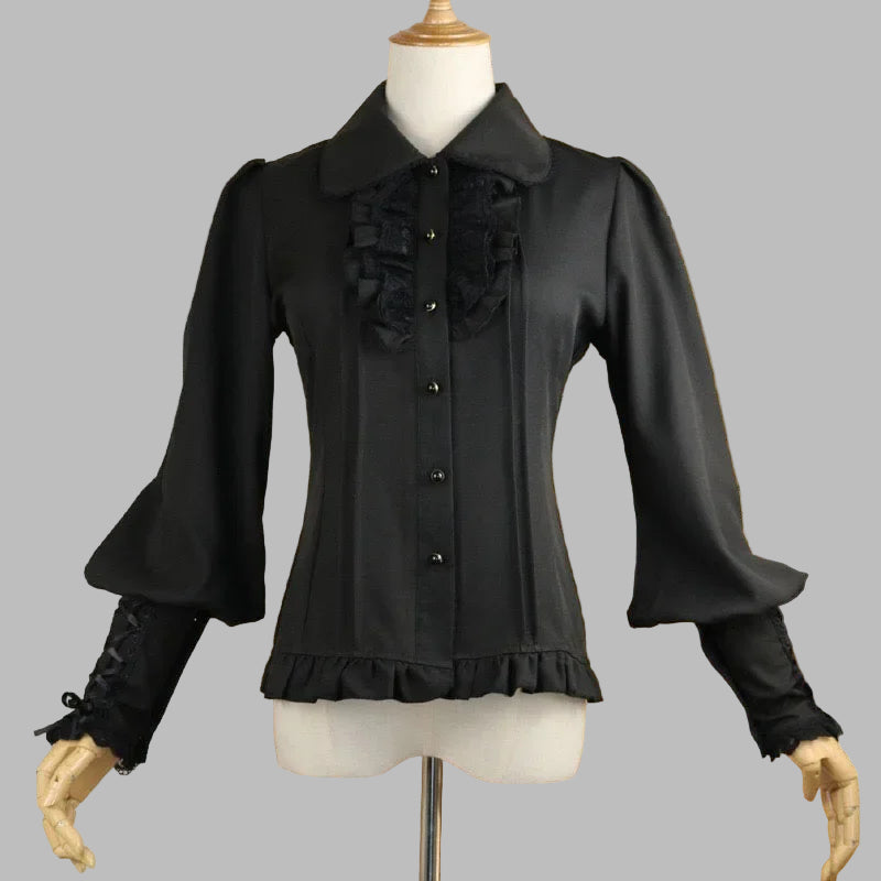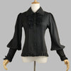 Fekete Metal Blúz Fodrokkal és Fűzős Ujjakkal