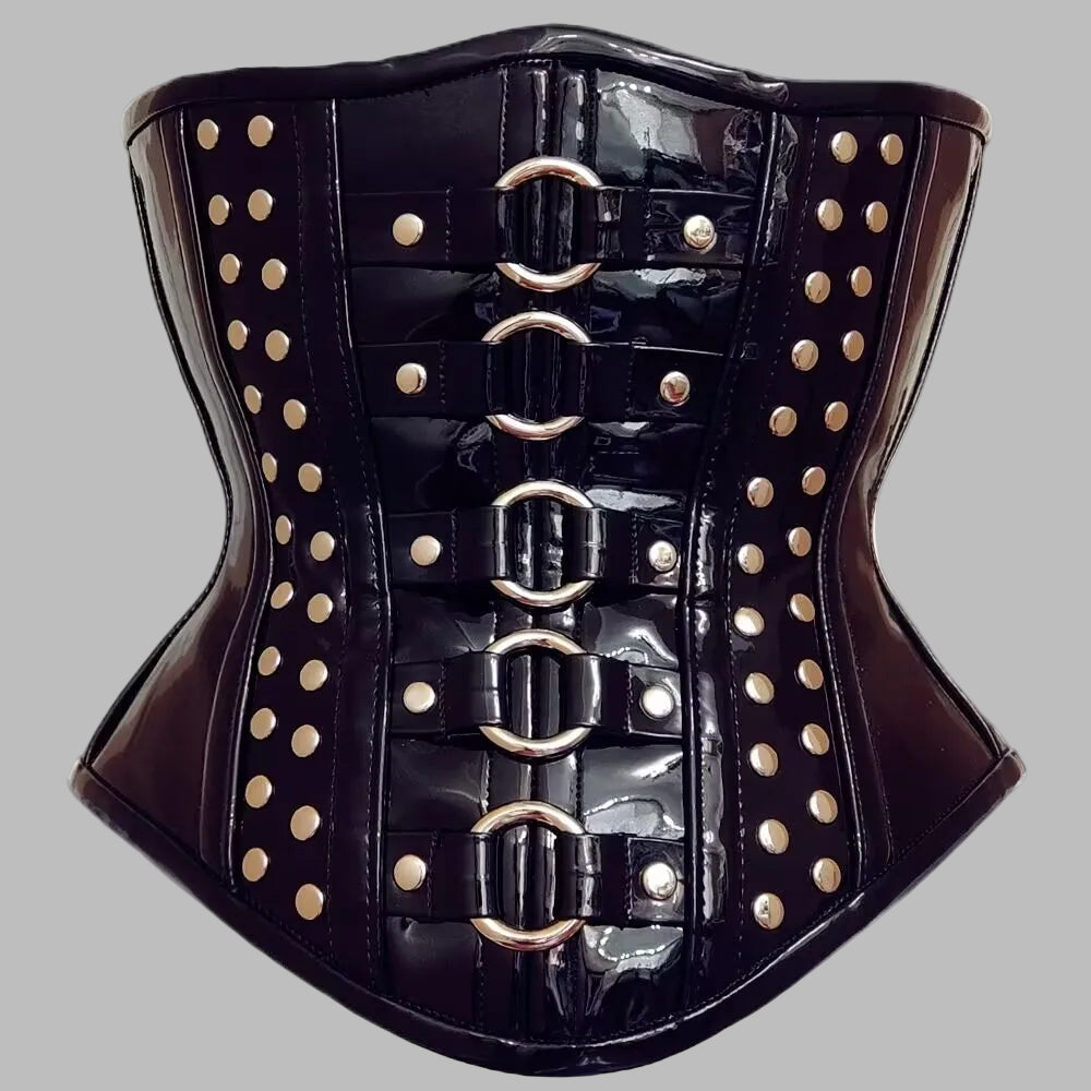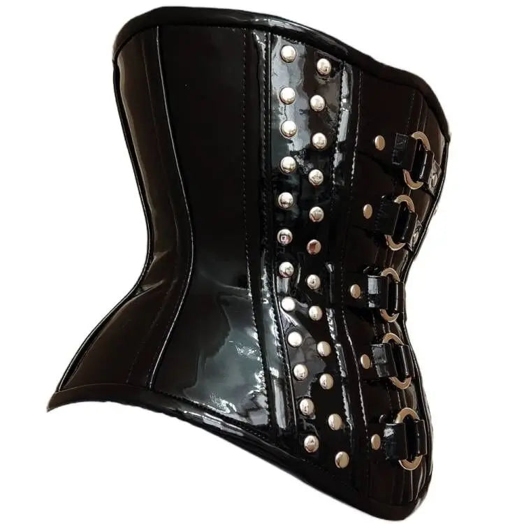 Fekete gótikus punk fűző fém csatokkal és szegecsekkel 4XL
