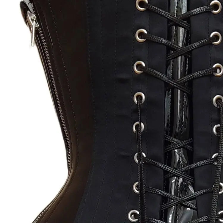 Fekete gótikus punk fűző fém csatokkal és szegecsekkel