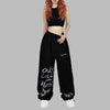 Fekete gótikus rock nadrág felirattal, oversize grunge melegítőnadrág