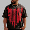 Fekete Heavy Metal Póló Piros Mintával XXL