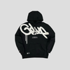 Fekete kapucnis Metal pulóver fehér logóval és felirattal