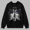 Fekete kapucnis pulóver szárnyas csontvázzal, metal stílusban