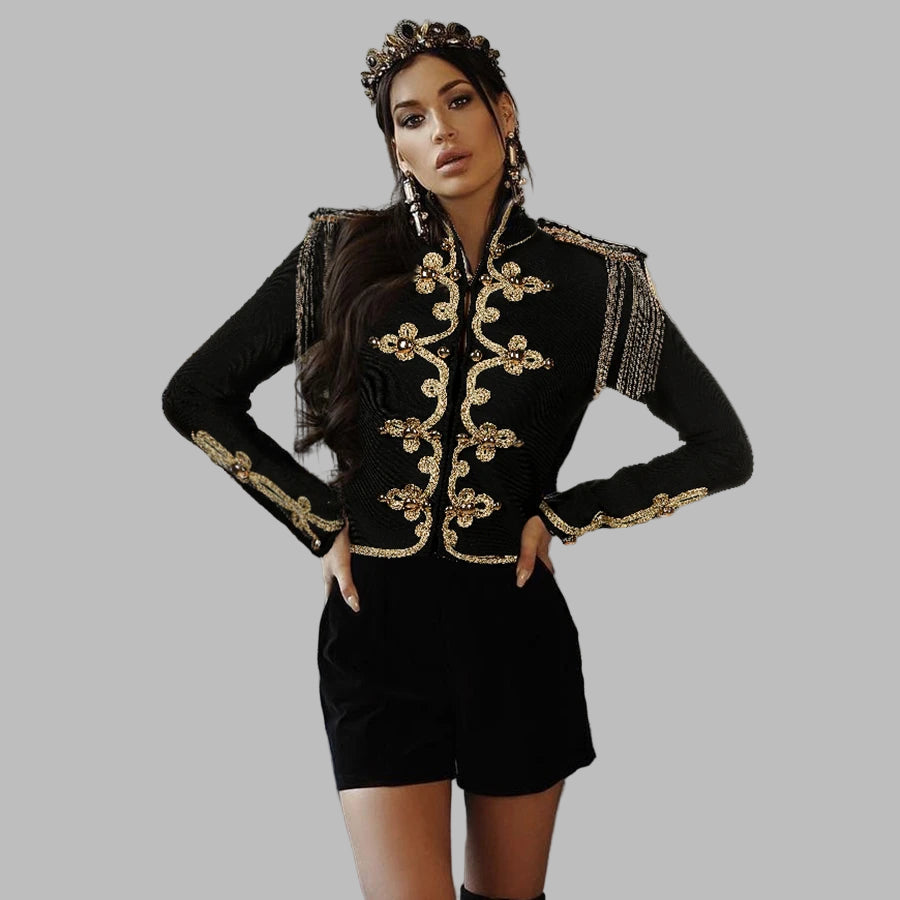 Fekete katonai blézer arany hímzéssel női vintage steampunk
