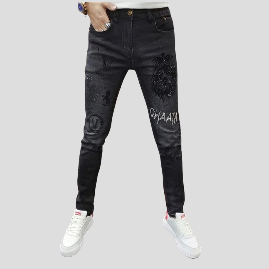 Fekete Skinny Metal Farmer Lyukakkal és Vintage Feliratokkal
