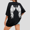 Fekete oversize póló fehér szárnyakkal punk stílusban