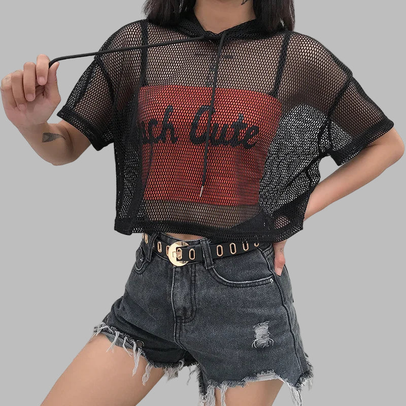 Fekete punk hálós kapucnis póló Lehetosegek megtekintese