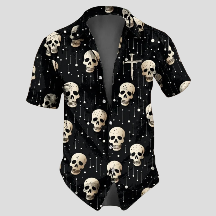 Fekete punk ing koponyákkal és keresztekkel, rövid ujjú