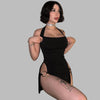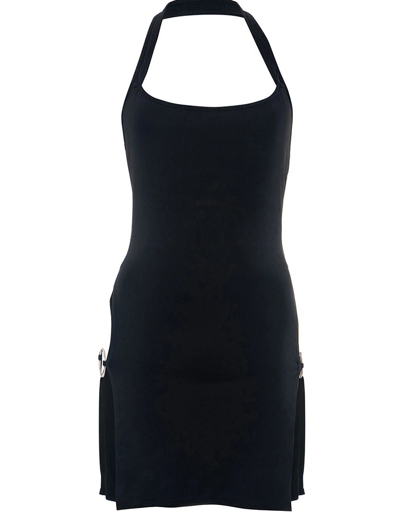 Fekete punk rock mini ruha halter nyakpánttal és csatokkal
