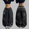Fekete Punk Rock Nadrág Növényi Hímzéssel Grunge Stílusban