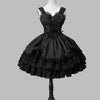 Fekete punk ruha réteges fodrokkal és fűzős pántokkal L