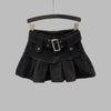 Fekete punk szoknya övvel és fém redőkkel