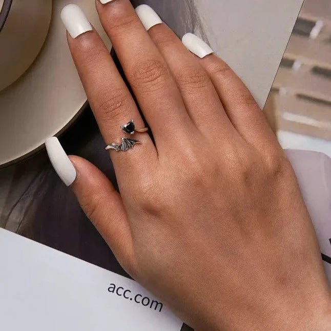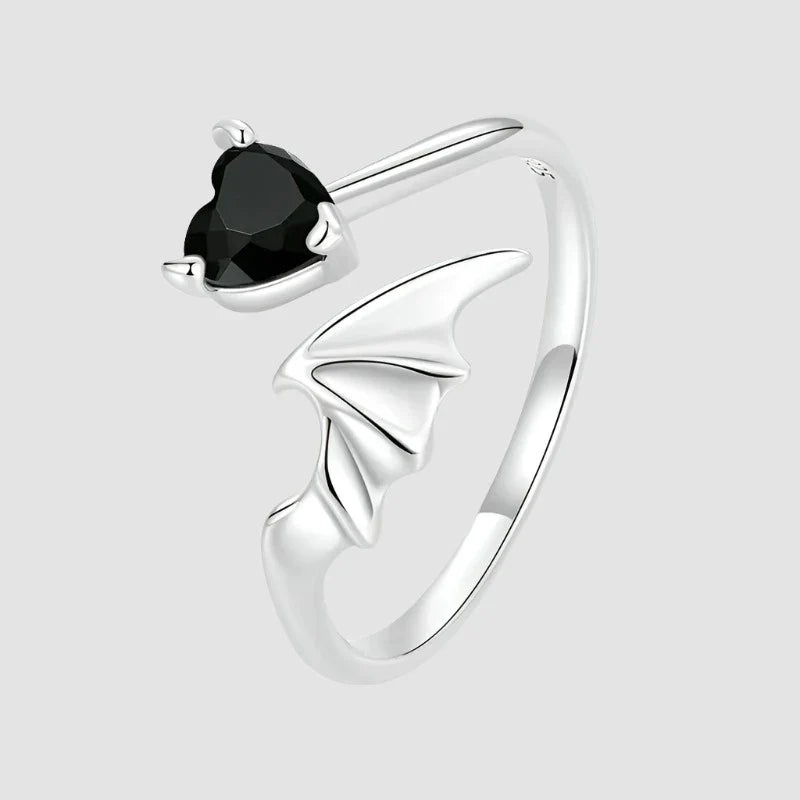 Fekete szárnyas szív alakú gyűrű, 925 ezüst Megtekintési beállítások