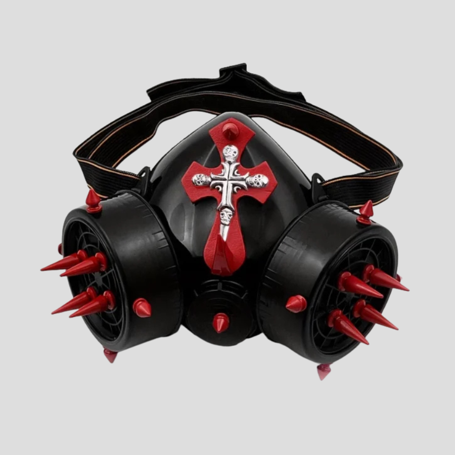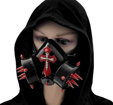 Fekete fém maszk piros kereszttel és szegecsekkel