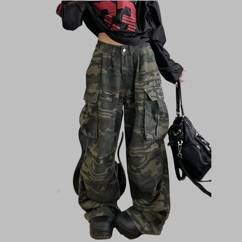 Férfi Cargo Nadrág Punk Grunge Katonai Álcázott Bő