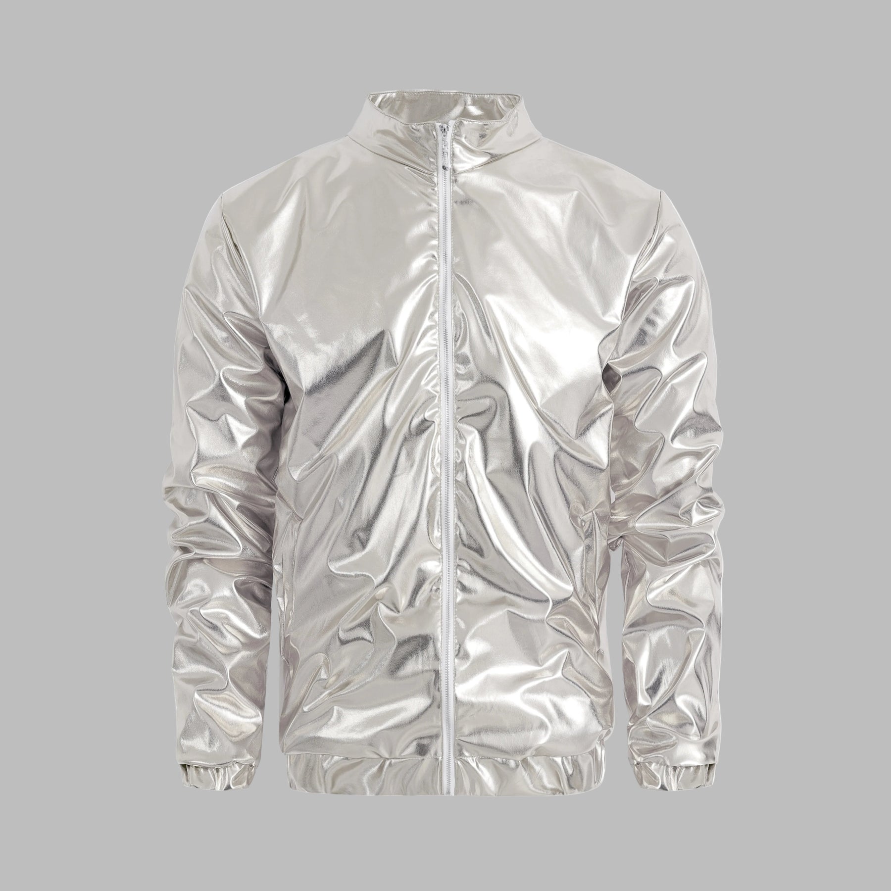 Férfi Ezüst Metál Fényes Bomberdzseki