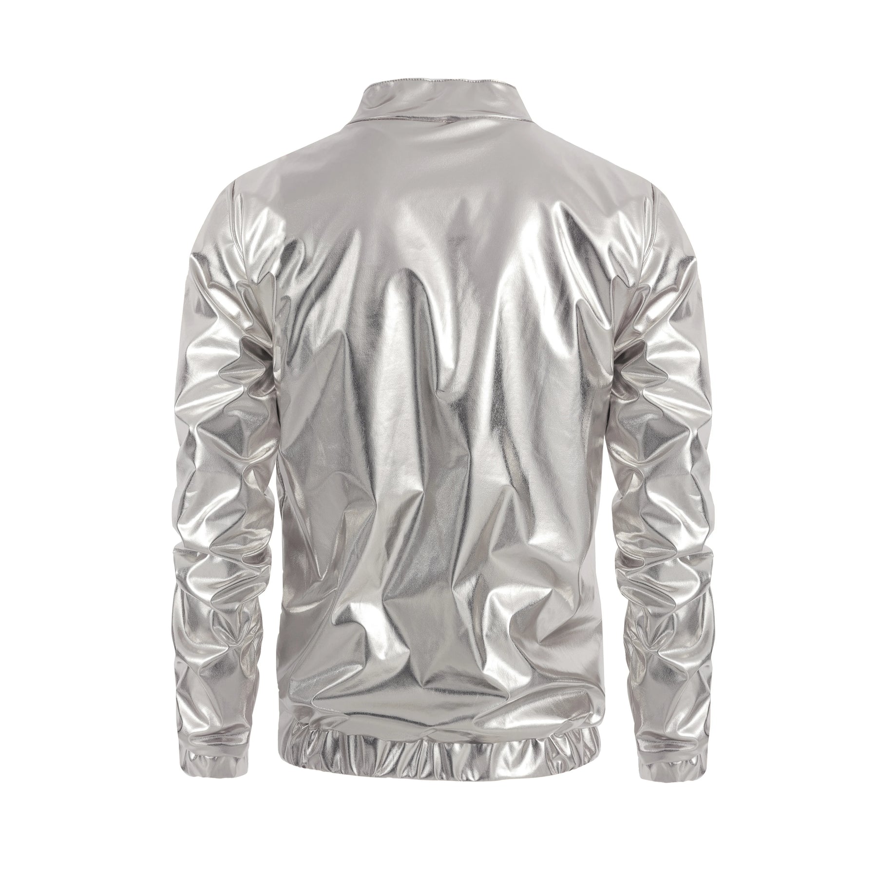 Férfi Ezüst Metál Fényes Rock Bomberdzseki