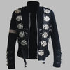 Férfi Steampunk Fekete Bársony Gótikus Kabát Fém Díszítéssel