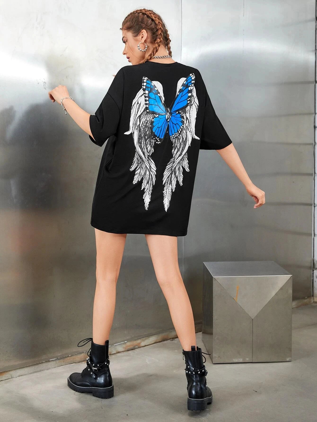 Női kék oversize gothic rock blúz pillangószárny mintával