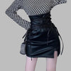 Gótikus Bőr Mini Szoknya Fűzős Punk Rock