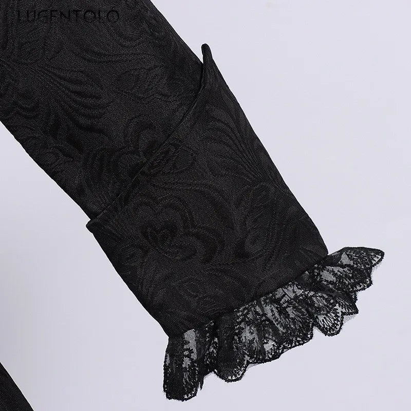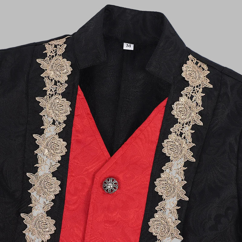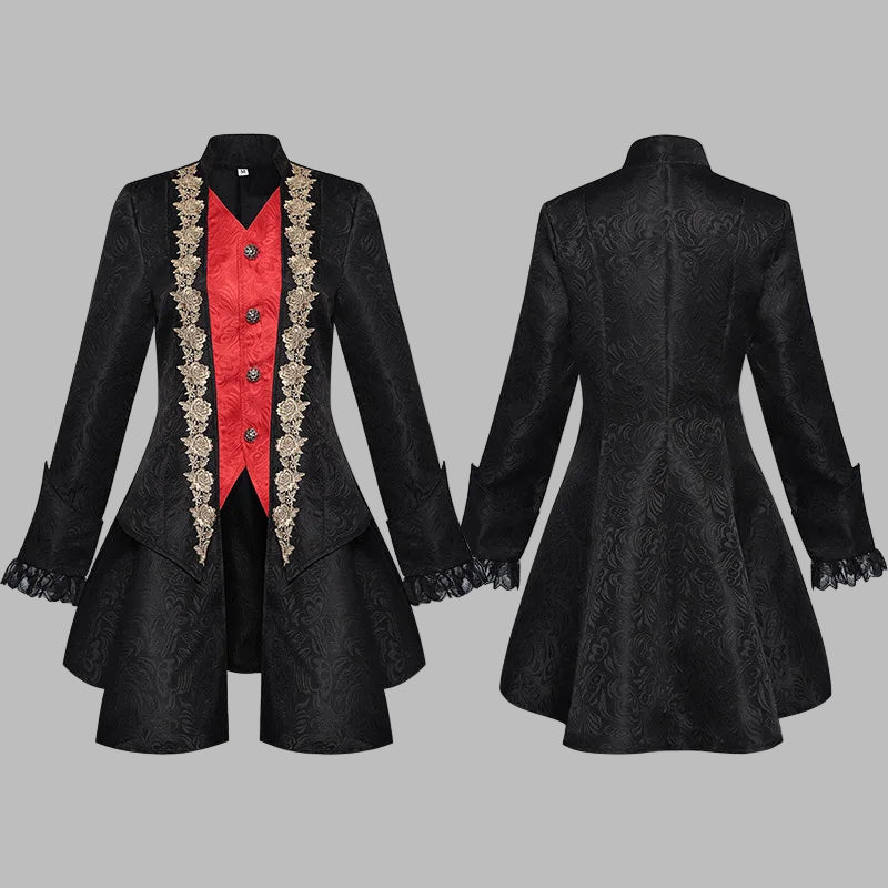 Gotycki Płaszcz Damski Czarny z Czerwoną Wstawką i Koronką Megtekintési beállítások