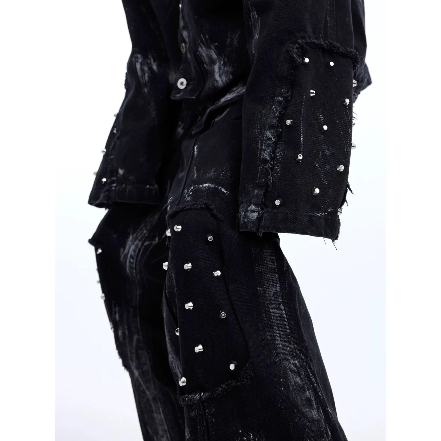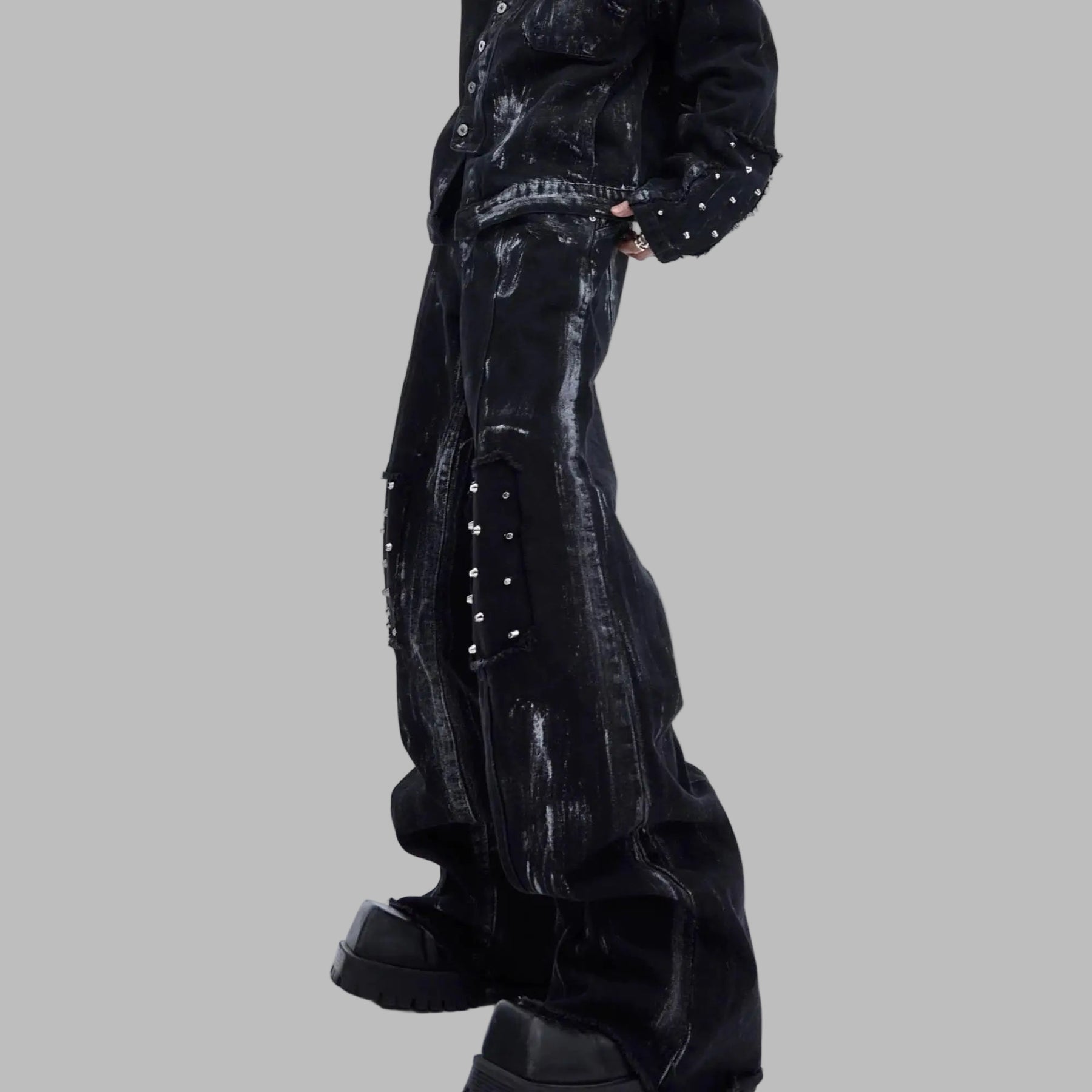 Gotyckie Spodnie Grunge Czarne Ćwieki Dziury Vintage Oversize